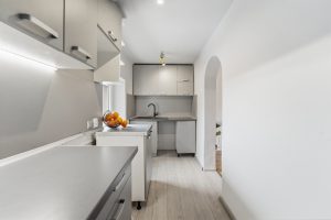 Parter domu; składa się z dwóch ustawnych pokoi, oddzielnej kuchni, łazienki oraz dodatkowe pomieszczenie pełniące funkcję spiżarni lub schowka oraz dużego, wygodnego przedpokoju, który stanowi centralną część kondygnacji.