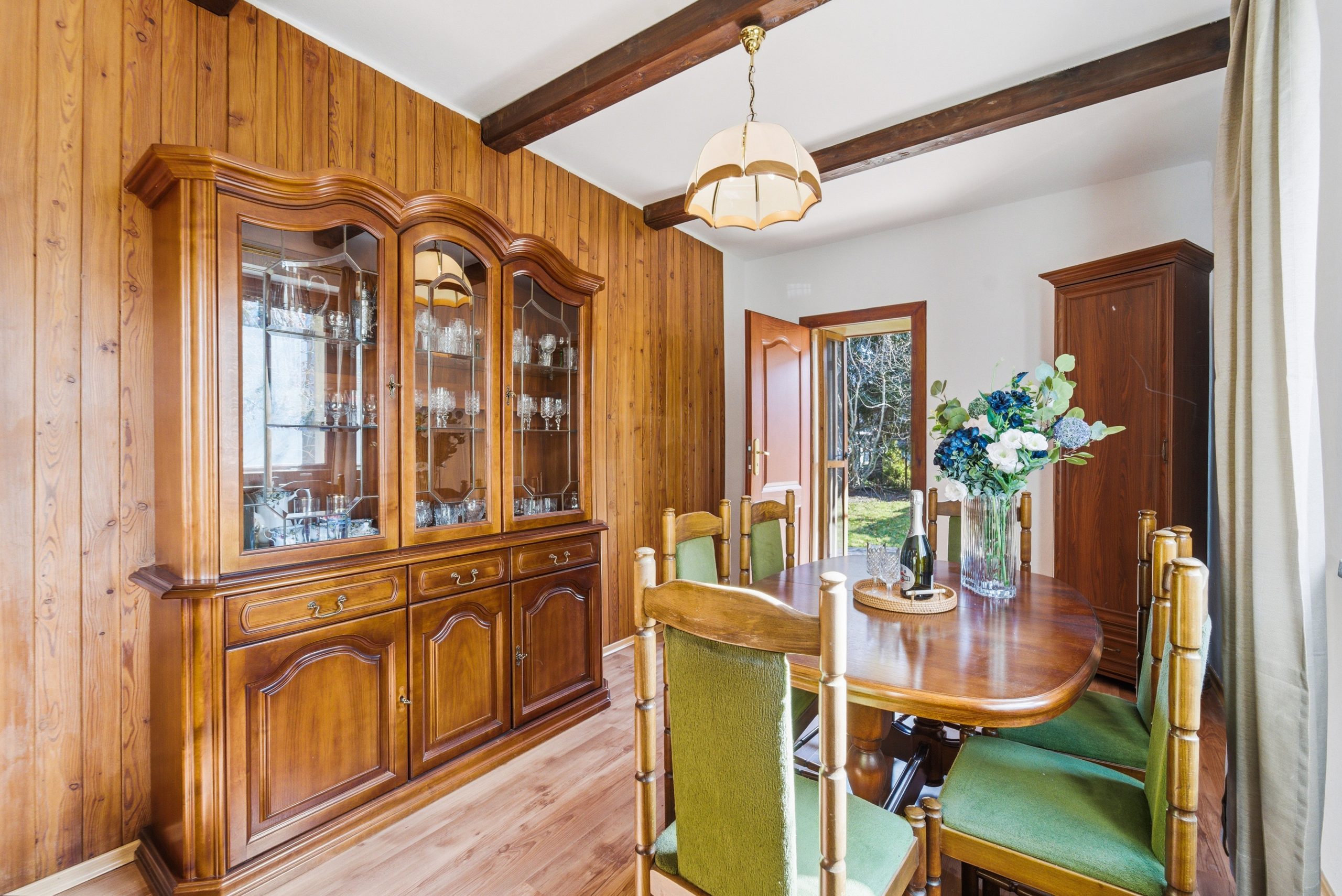 Na działce znajduje się również dodatkowy budynek z garażem, a nad nim pomieszczenie typu strych, które można wykorzystać według własnych potrzeb – jako magazyn, pracownię lub dodatkową przestrzeń.