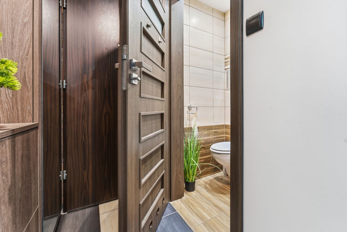 W 2019 roku lokal przeszedł kompleksowy remont wraz z wymianą wszystkich instalacji, co daje poczucie bezpieczeństwa i pewność, że mieszkanie nie wymaga żadnych prac. Wymieniono również okna, co dodatkowo podniosło standard i komfort cieplny. Dwustronna ekspozycja – na północ i południe – zapewnia naturalne światło przez cały dzień, a jednocześnie chroni wnętrze przed nadmiernym nagrzewaniem. Podłogi wykończone panelami nadają przestrzeni spójny, uniwersalny charakter, który łatwo dopasować do własnego stylu.